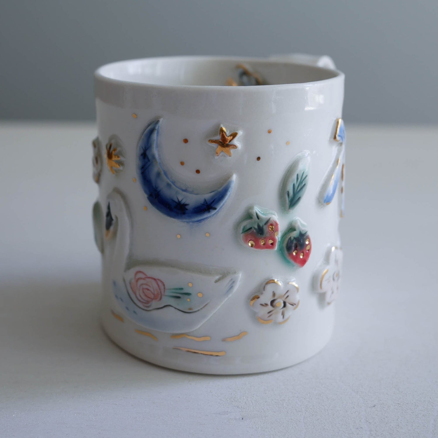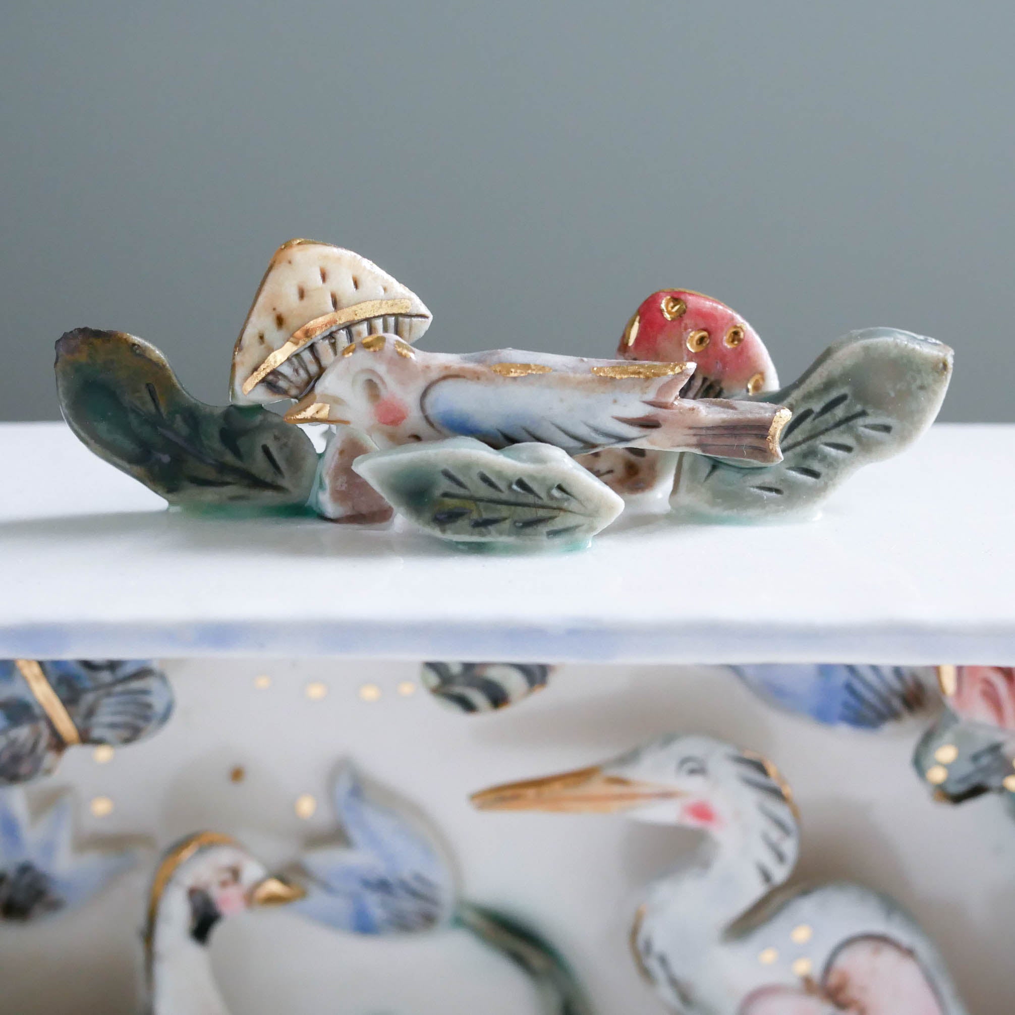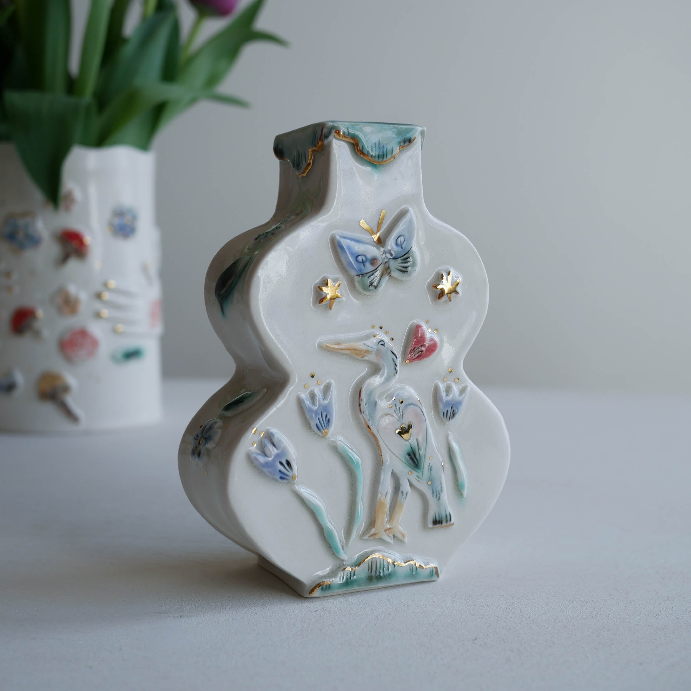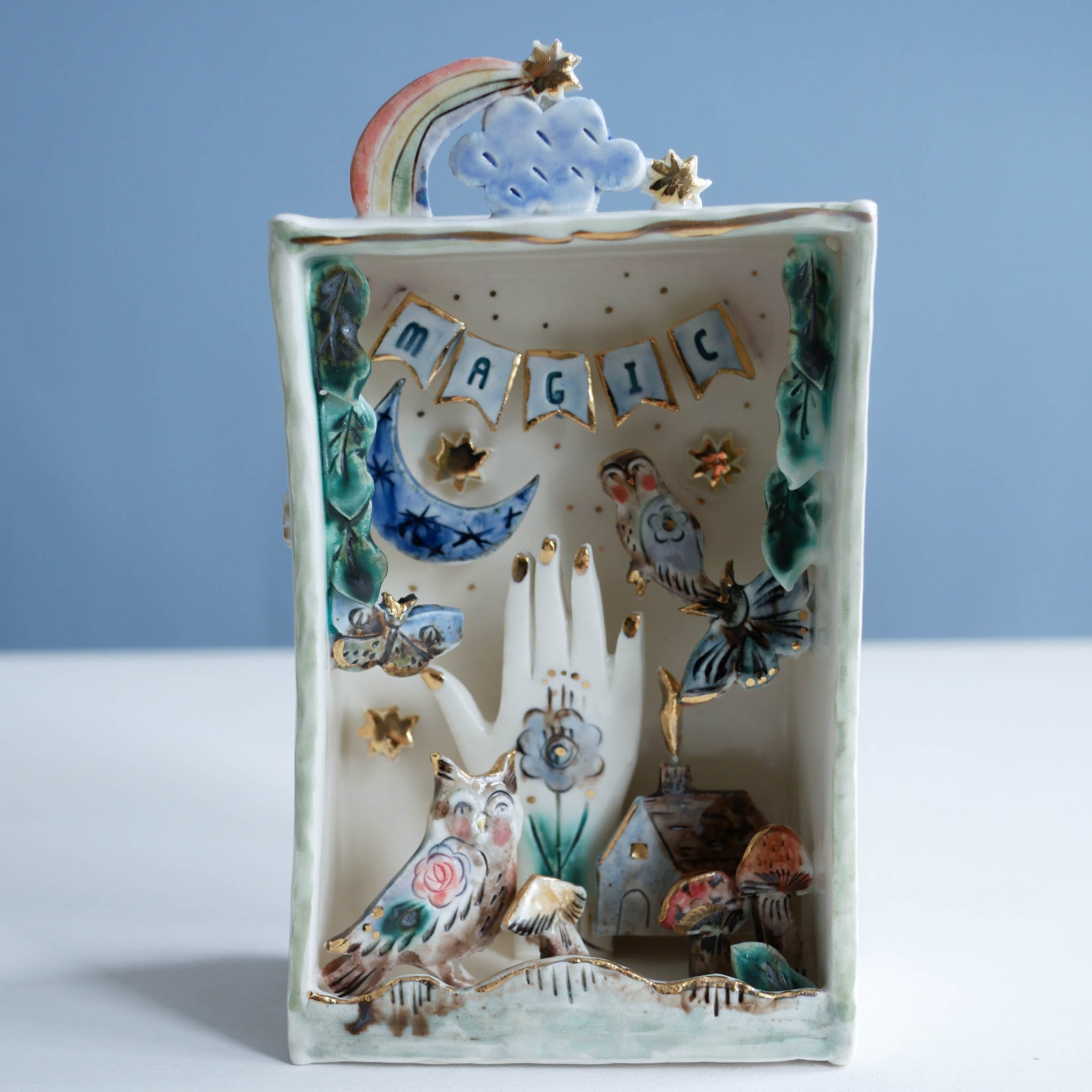 I create small sculptural work & decorative functional pottery for the home. I explore and play with different themes of nostalgia, folktales, feminism & mysticism.